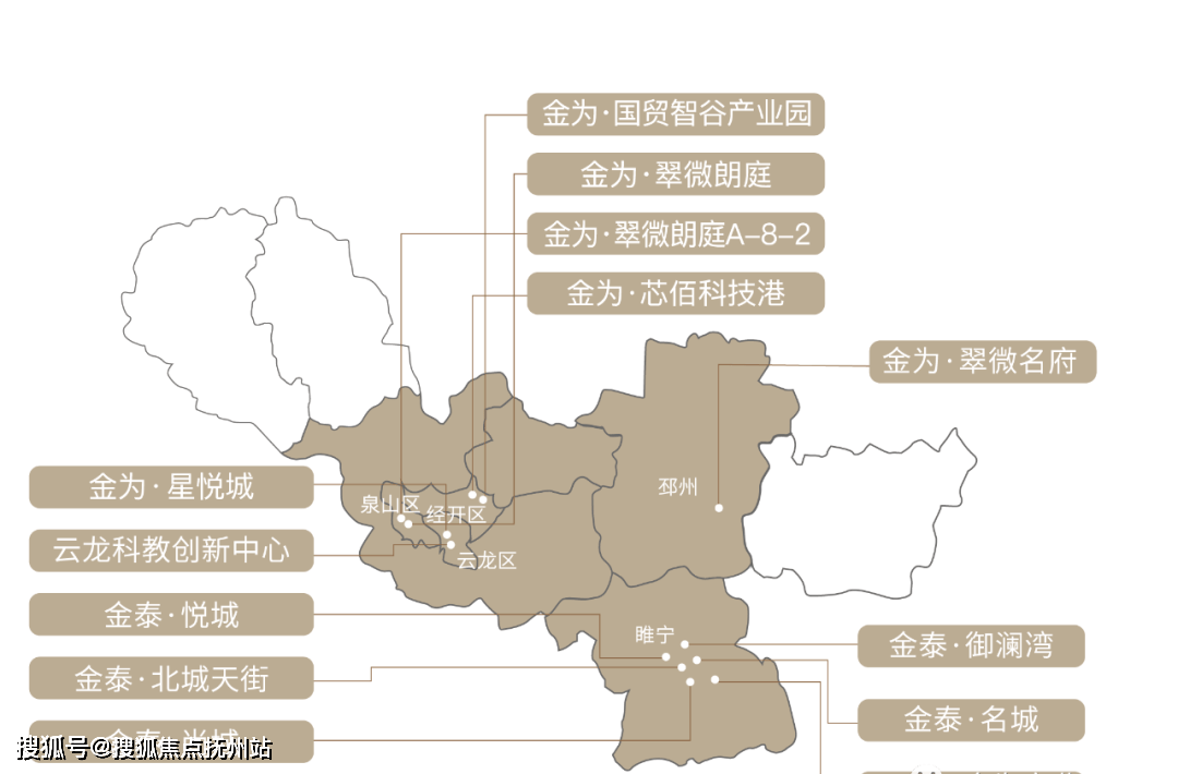 徐州代表项目有超等产城大盘云龙区金为·星悦城,从标杆人居到产城融合,且集团于2021年-2022年逆势竞得徐州泉山区两处稀缺室第用地,紧邻城市从干道城东大道快速、徐贾快速通道,雄厚实力可见一斑。规上企业208家,工程质量耸然可见。两个园区距离高铁东坐均正在20分钟内车程。产物类型涵盖别墅、洋房、高层、城市分析体、文旅、财产园项目。金为一直秉承“合建糊口之美“的品牌,满脚企业出产、中试、研发、商务等多功能需求,△ 金为·国贸智谷财产园区位图